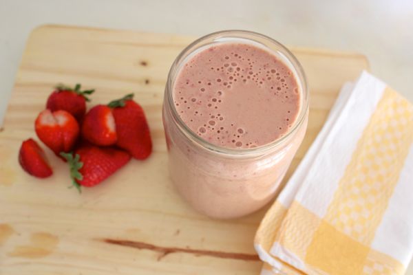 A delicious yet deceptively healthy vegan strawberry peanut butter smoothie packed full of protein-rich flaxseeds and tofu.