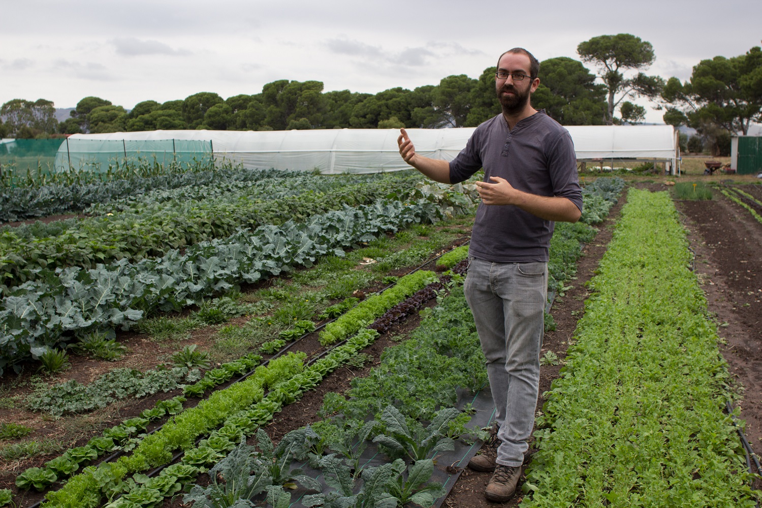 I snapped this pic of Nat on the first occasion I met him — when I took a Village Greens farm tour as part of my Permaculture Design Certificate studies in 2017. Look at all that amazing organic produce, yummo.