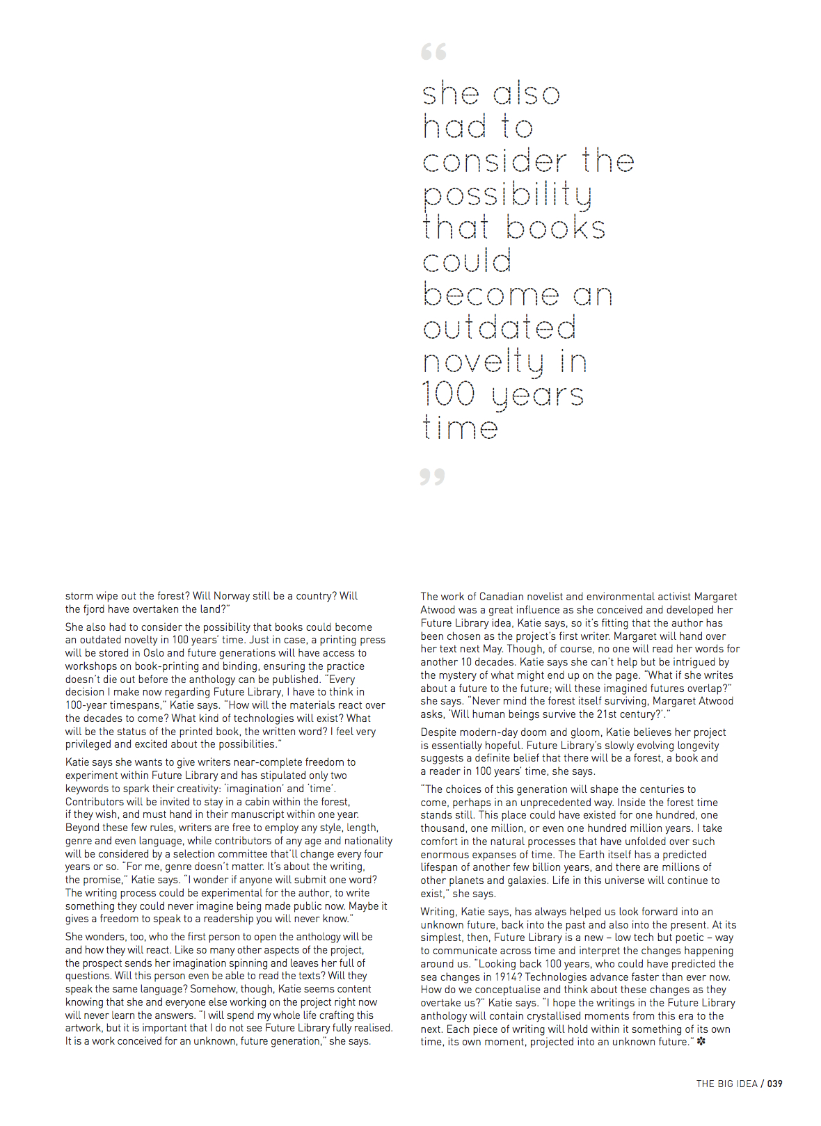 frankie issue 63 - Katie Paterson's future library frankie issue 63 - Katie Paterson's future library