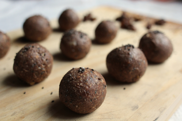 Roll into bite-sized balls and place in the freezer for half an hour to allow the coconut oil to harden. These are best served chilled.