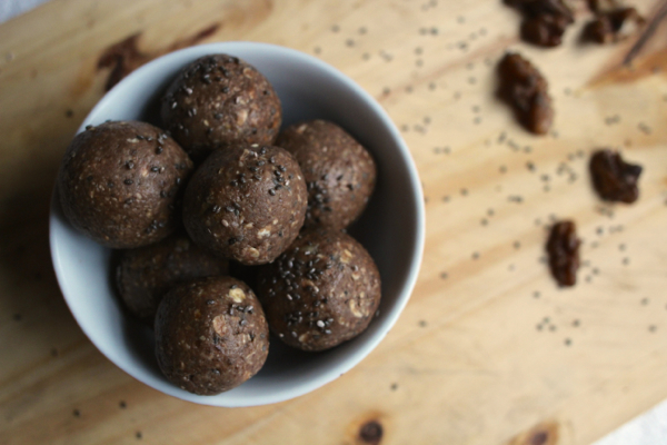 Vegan spiced chocolate carob banana chia bliss balls